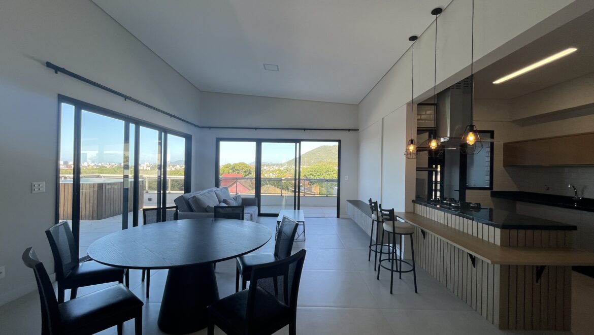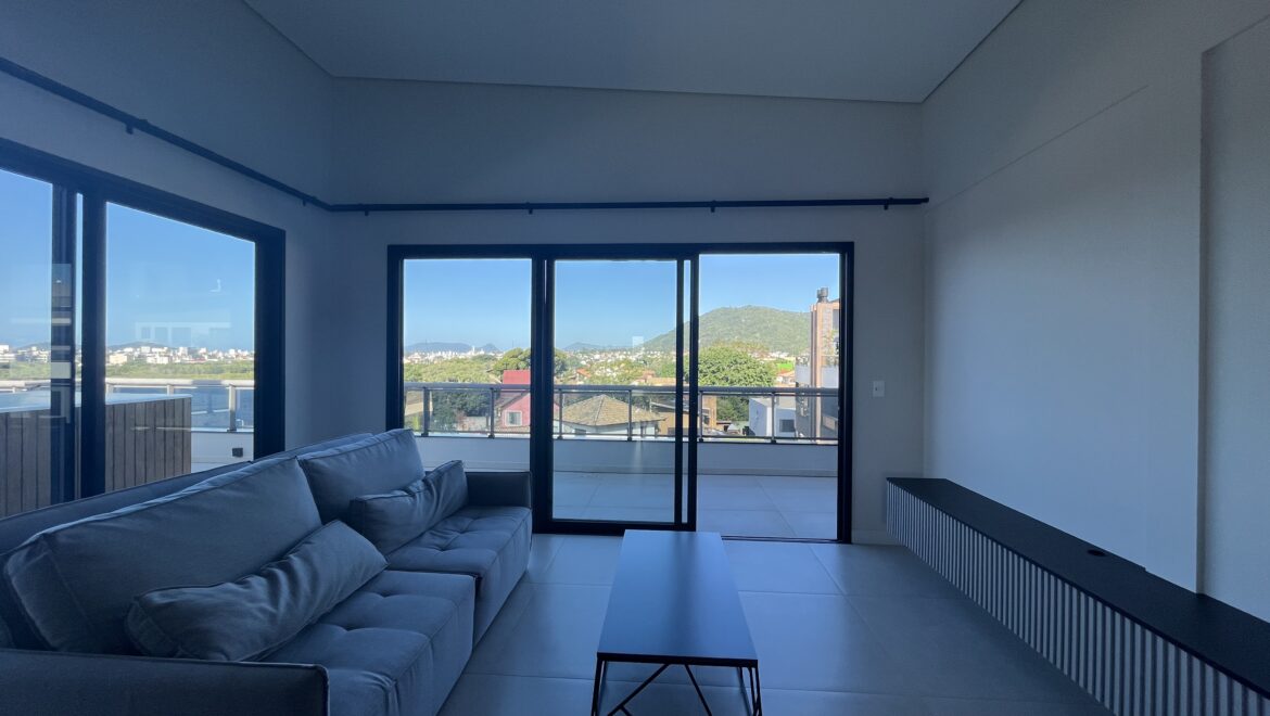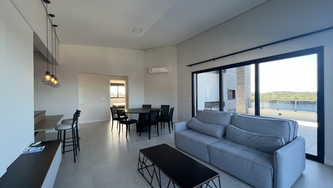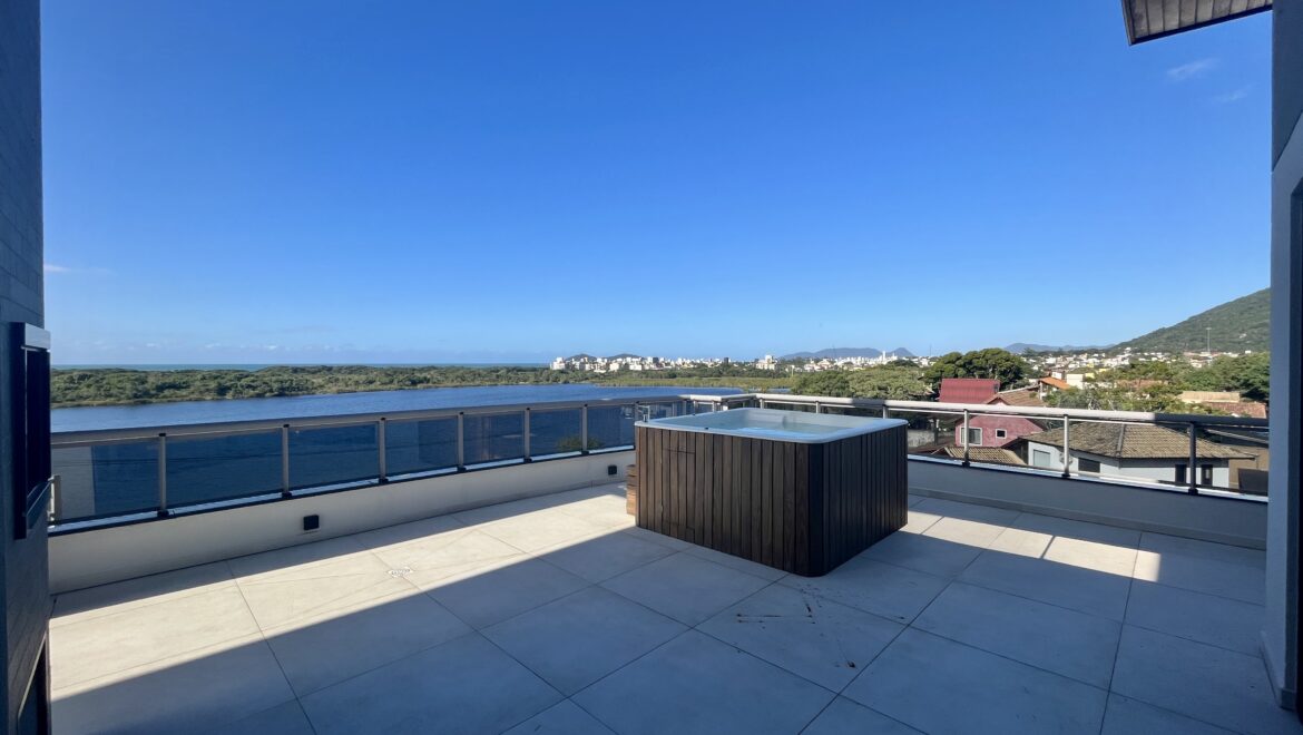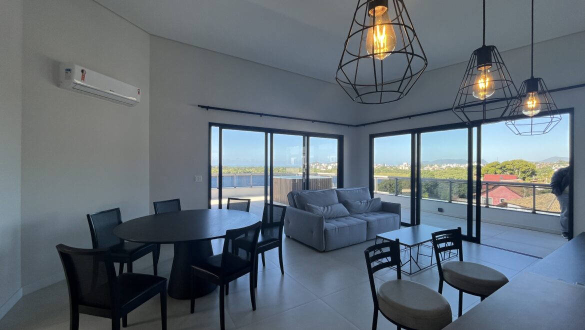 Uma joia rara no sul da ilha, essa cobertura une conforto, amplitude e uma vista de tirar o fôlego. São três dormitórios, todos suítes, distribuídos em um projeto moderno e funcional.