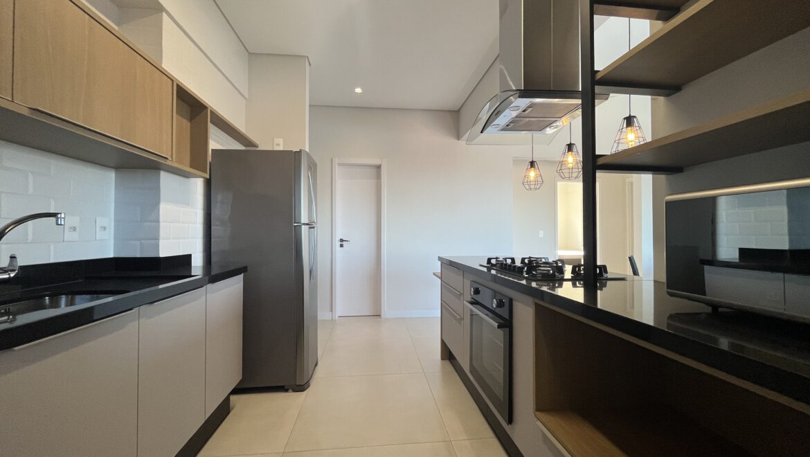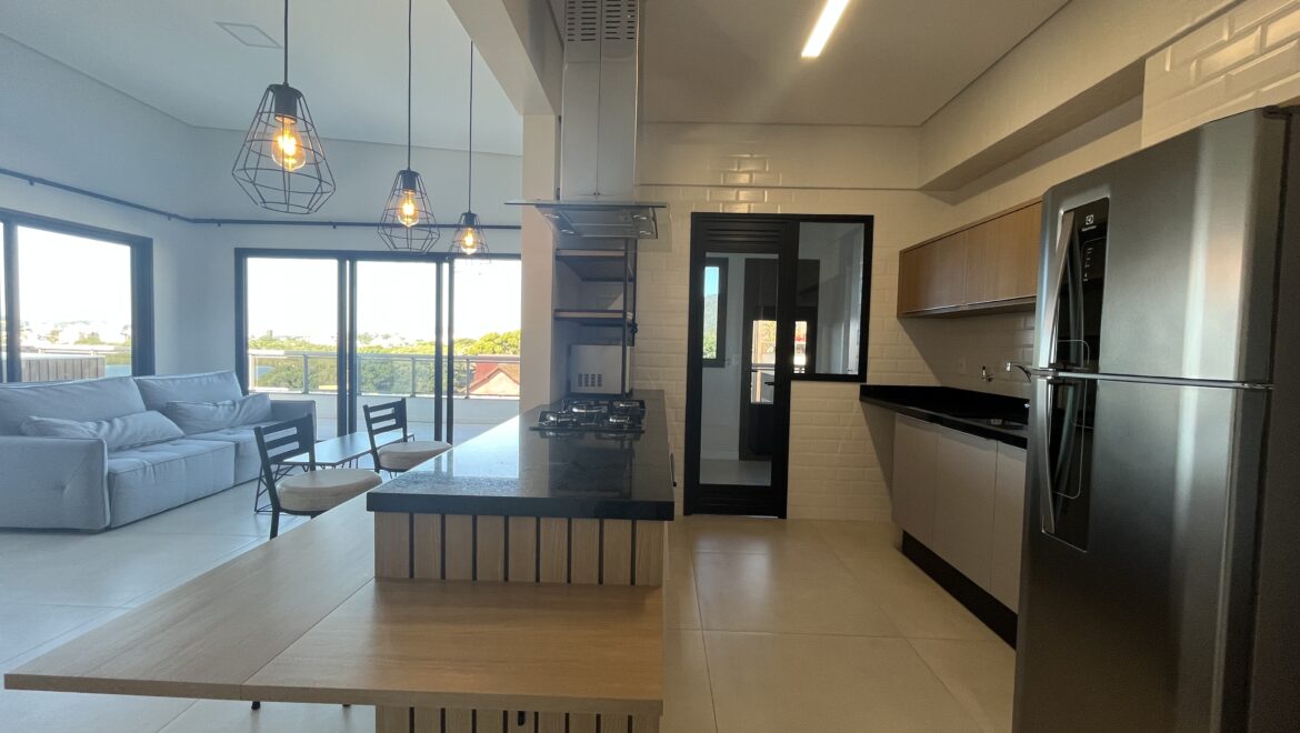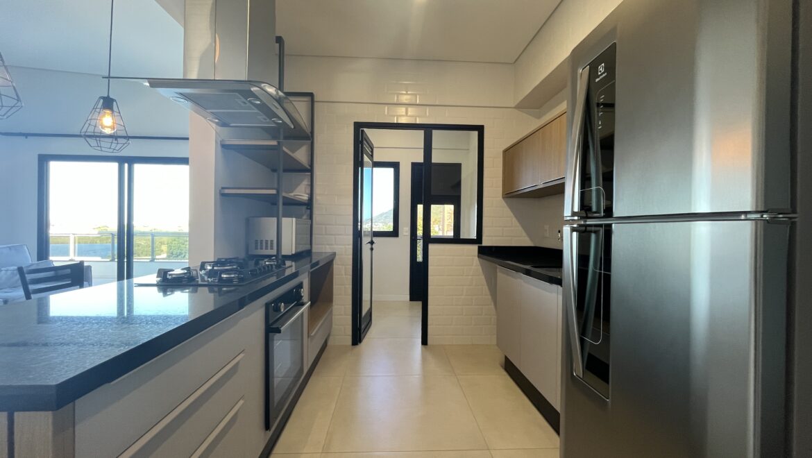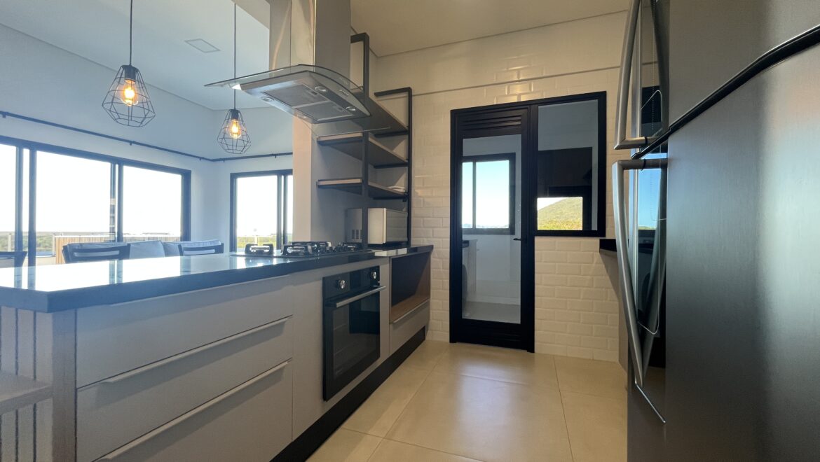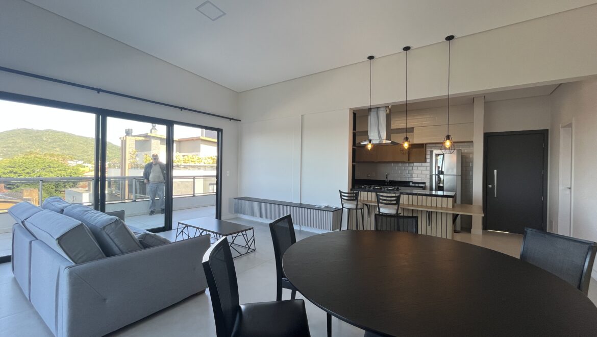 Uma joia rara no sul da ilha, essa cobertura une conforto, amplitude e uma vista de tirar o fôlego. São três dormitórios, todos suítes, distribuídos em um projeto moderno e funcional.